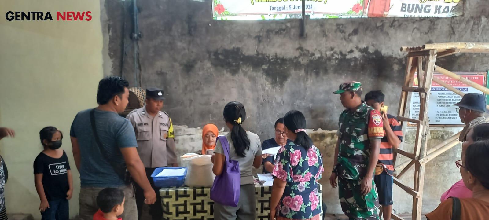 Sinergitas TNI-Polri hadir mengawal jalannya penyaluran, dimana Polsek Blahbatuh menerjunkan personel Bhabinkamtibmas Blahbatuh guna berkolaborasi dengan Babinsa Koramil 1616-04/Blahbatuh atensi yang dilaksanakan di pelataran parkir Kantor Prebekel Blahbatuh.