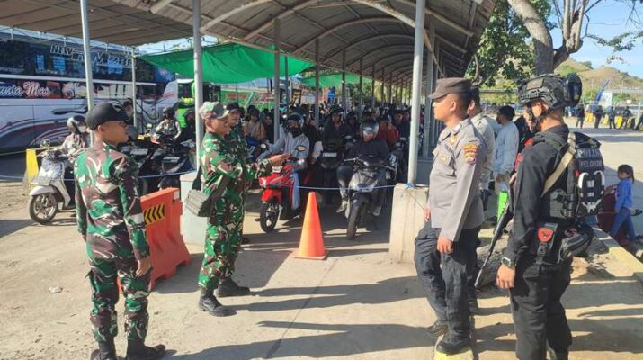 Sumbawa Barat, NTB – TNI-POLRI Bersinergi gabungan Anggota Pos Terpadu Ops Ketupat Renjani tahun 2025 Pantau Situasi Dan Kondisi dan pengamanan obyek Vital Pelabuhan Poto Tano Pada Harus Balik Hari Raya Idul Fitri tahun 2025. bertempat di Pelabuhan Poto Tano kecamatan Poto Tano Kabupaten Sumbawa Barat.