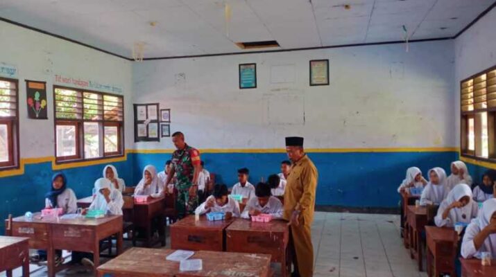 Gentra.co.id Dompu-NTB. Dalam rangka mendukung pemenuhan gizi bagi pelajar sekolah, Babinsa Koramil 1614-01/Dompu Serka Amril Kodim 1614/Dompu melaksanakan pendampingan kepada Tim Satuan Pelayanan Pemenuhan
