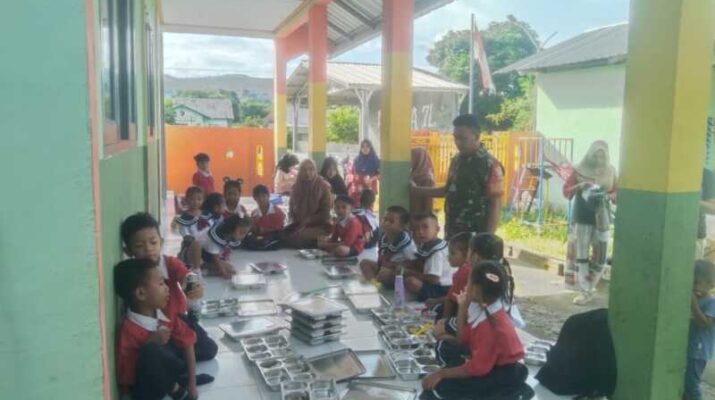 Tingkatkan Gizi Anak Sekolah, TNI dan SPPG Bersinergi di Kecamatan Lunyuk