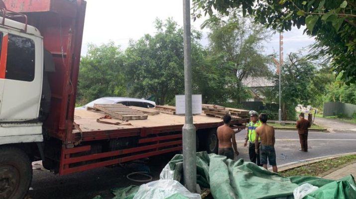 Gentra.co.id BaliĀ – Pada Jumat (10/1), arus lalu lintas di jalan menuju Sawangan, tepatnya di dekat Hotel Mulia, mengalami kemacetan akibat sebuah truk tronton bermuatan besar mengalami kerusakan. Truk bernopol DK 8090 BZ yang dikemudikan oleh Anton Setia Budi mogok di tengah jalan akibat ban belakangnya rusak.