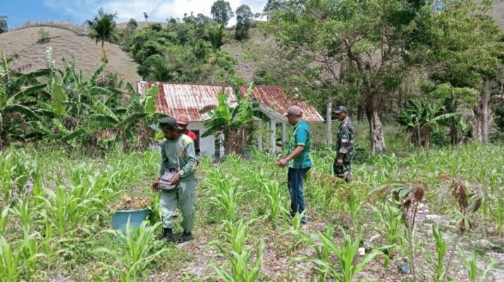 Kolbano, TTS — Dalam upaya memperkuat ketahanan pangan dan membantu masyarakat menjaga stabilitas ekonomi di wilayah pedesaan, Babinsa Koramil 1621-02/Amanuban Tengah, Serma Okri, melaksanakan kegiatan Komunikasi Sosial (Komsos) sekaligus mendampingi warga menanam sayur di Desa Ofu, Kecamatan Kolbano, Kabupaten Timor Tengah Selatan, Rabu (08/10/2025).