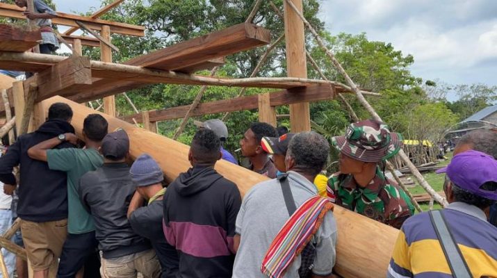 Turut Serta Bangun Rumah Adat, Bentuk Perhatian Satgas Yonif 741/Gn Pos Ailala Pada Masyarakat Binaan