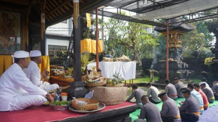 Pada kegiatan persembahyangan bersama di Pura Giri Brata Polres Bangli bertindak selaku Rohaniawan pemuput Bakti Jro Mangku Ipda Wayan Budiarga didampingi Mangku Bidari, Mangku Akp Wayan Wista dan Bripka Putu Swedarma, Sh, dengan rangkaian Katurang Bakti, pebersihan, Sembahyang bersama dsn Nunas tirta wangsuhpada Ida Batara ring purs Giri Brata Polres Bangli.