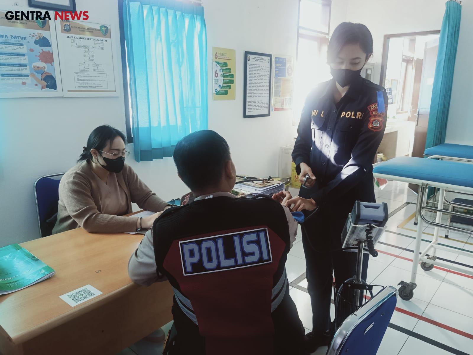 Gentra News Bali – Gianyar, Demi suksesnya pelaksanaan Operasi Patuh Agung 2024, Sub Satgas Dokkes Satgas Banops Patuh Agung Polres Gianyar melaksanakan kegiatan Kesehatan Lapangan (Keslap) berupa pemeriksaan kesehatan terhadap personil yang tergabung dalam Operasi Patuh Agung 2024. Kegiatan ini dilakukan sebagai bagian dari upaya menjaga kesehatan dan kesiapan anggota dalam menjalankan tugas selama operasi berlangsung. Senin (15/7/2024)
