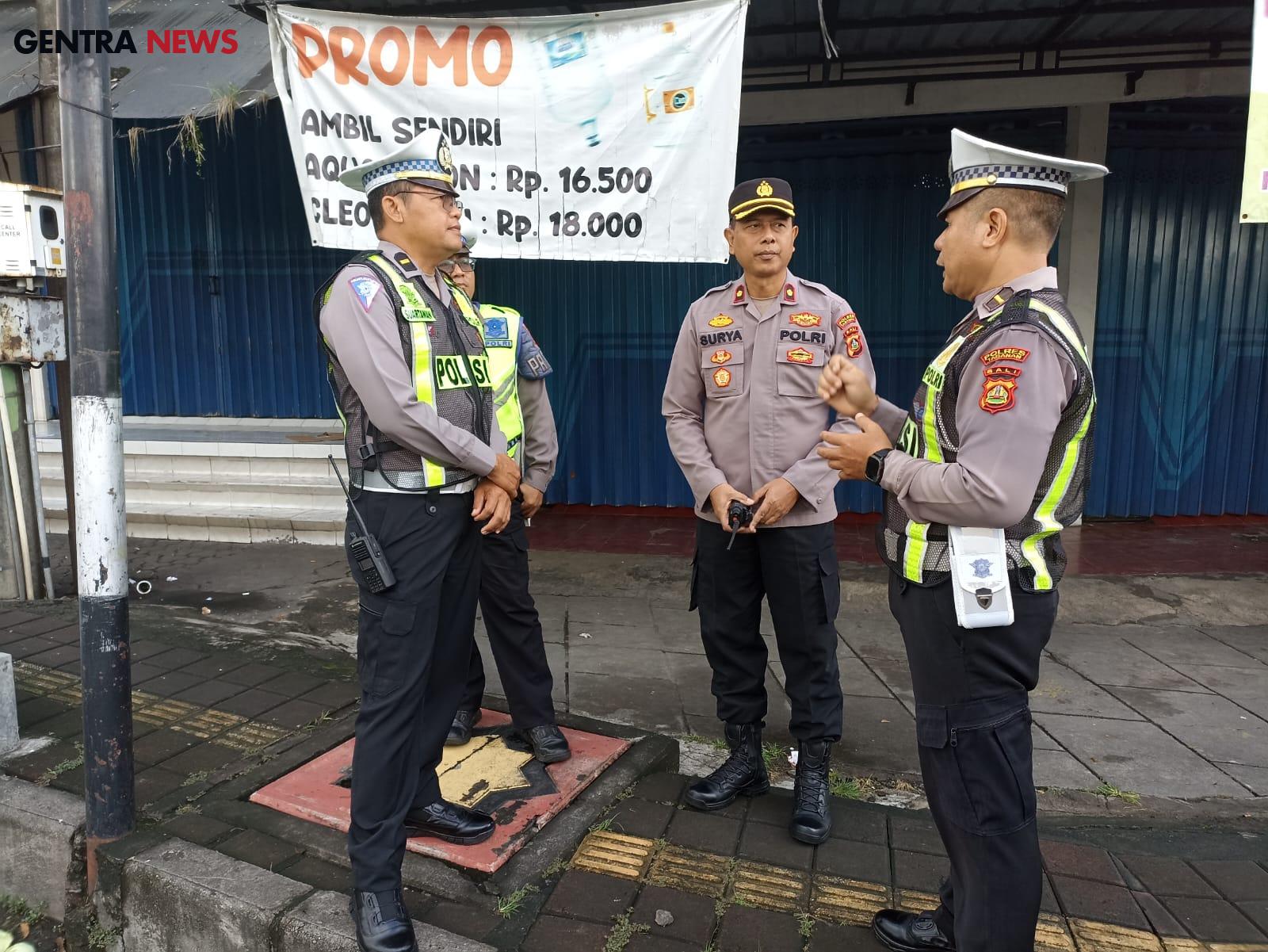 Dalam pengecekan tersebut, Kompol Surya Atmaja turun langsung ke lapangan untuk memantau kondisi lalu lintas dan memberikan arahan kepada petugas yang berjaga. Beliau juga berdialog dengan beberapa pengguna jalan untuk mendengarkan keluhan dan masukan terkait kondisi lalu lintas di area tersebut.