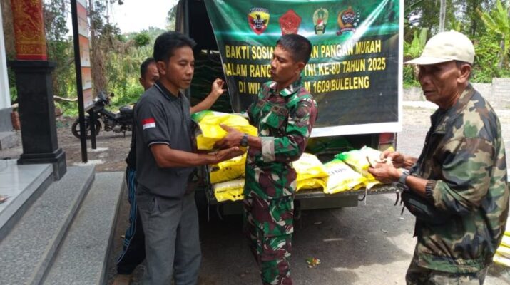 SERIRIT, (29/09/2025) — Dalam rangka memperingati HUT TNI ke-80 Tahun 2025, Kodim 1609/Buleleng menggelar kegiatan Bhakti Sosial Gerakan Pangan Murah di Desa Gunungsari, Kecamatan Seririt, Kabupaten Buleleng pada Senin (29/9). Kegiatan ini berlangsung di Kantor Desa Gunungsari mulai pukul 09.00 WITA dan dihadiri oleh masyarakat dengan antusias.