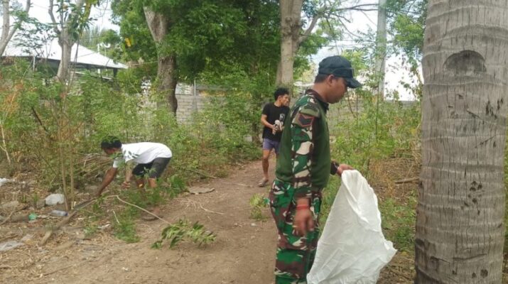 Lombok Utara, NTB – Bintara Pembina Desa (Babinsa) Gili Indah, Komando Rayon Militer (Koramil) 1606-02/Tanjung, bersama warga dan pemuda setempat bahu-membahu membersihkan lingkungan Dusun Gili Trawangan, Kecamatan Pemenang, Senin (3/11/2025).
