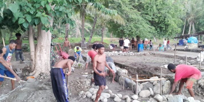 Babinsa Koramil 1603-03/Paga Kodim 1603/Sikka Sertu Iskandar Dula melaksanakan kegiatan gotong royong pembangunan rumah warga di wilayah Kecamatan Paga, Kabupaten Sikka, Rabu (17/12/2025).