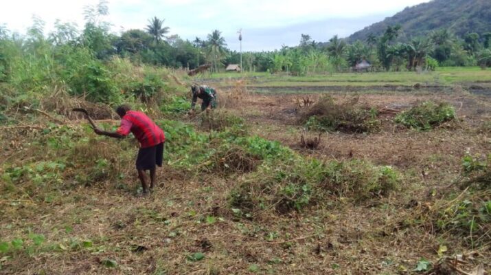 ALOR — Desa Waisika, 27 Oktober 2025 – Babinsa Desa Tarmana, Kecamatan Alor Timur Laut, Kabupaten Alor, Sertu Musa Bagaisar melaksanakan kegiatan gotong royong bersama masyarakat setempat. Kegiatan yang berlangsung di lahan sawah milik Bapak Andreas ini difokuskan pada pembersihan dan penyiapan lahan pertanian.