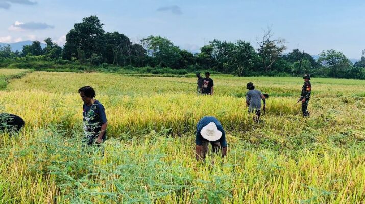 Pratu Hezron menyampaikan Wujud dukungan TNI khususnya prajurit kewilayahan dalam hal ini, Babinsa dalam mendukung ketahanan pangan dengan semangat ikut serta terjun langsung ke sawah dalam membantu para petani desa binaannya saat memanen padi. Inilah wujud nyata yang dilakukan oleh Babinsa kepada para petani warga desa binaannya.ujarnya.