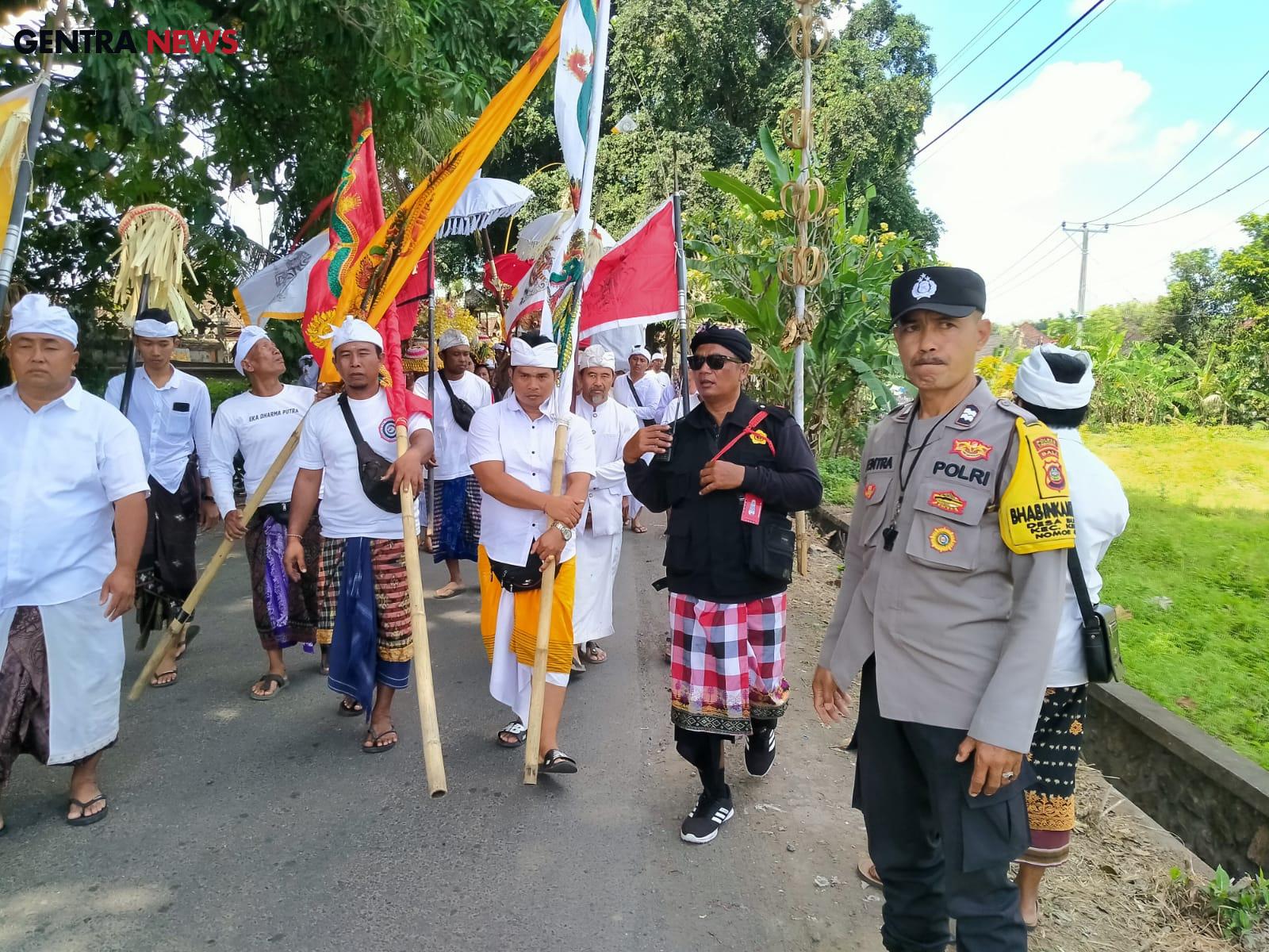 Kamis Tanggal 22/08/2024 pukul 05.00 s/d 15.00 wita Bhabinkamtibmas Desa Buwit Polsek Kediri Polres Tabanan Aiptu GN Pentra, bersinergi dengan Pecalang Desa adat Buwit melaksanakan pengamanan dan pengawalan upacara dewa yadnya ( nyegare gunung ) dari desa buwit menuju danau beratan ulundanu bedugul, rangkaian upacara Karye ngenteg linggih pedudusan Agung Menawa Ratna Tawur Balik Sumpah Madya Meyama Raja Pura dalem Desa lan Prajapati Desa Adat Buwit kec.kediri, Kab .Tabanan.