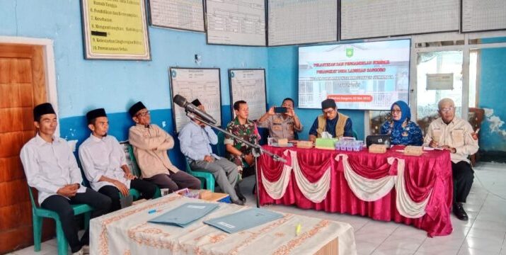 NTB – Sumabawa, Babinsa Desa Labuhan Sangoro, Serda Abdul Farid, anggota Koramil 1607-02/Empang, menghadiri kegiatan rapat pelantikan perangkat desa dan pelantikan Satuan Perlindungan Masyarakat (Satlinmas) yang berlangsung di aula Kantor Desa Labuhan Sangoro, Kecamatan Maronge, Kabupaten Sumbawa. Jumat (02/05/2025).