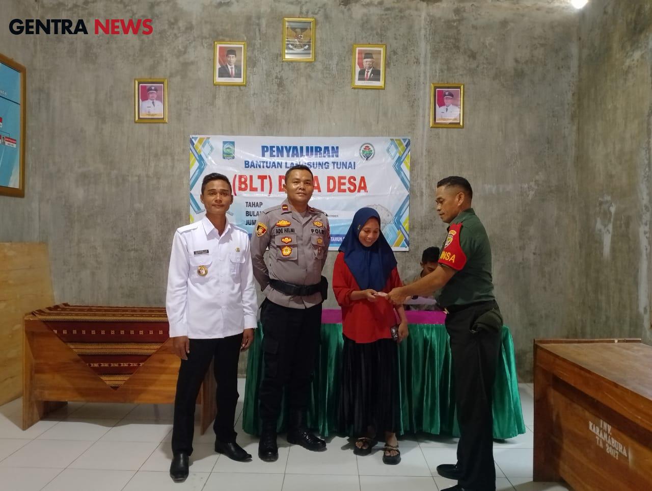 Gentra News NTB – Babinsa desa karamabura Kodim 1614-01/Dompu Serda Aksar menghadiri sekaligus lakukan pendampingan dan pengawalan kegiatan penyaluran bantuan langsung tunai dana desa (BLT DD) tahap II tahun 2024 bertempat di Kantor desa karamabura. Rabu (03/07/2024)