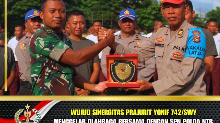 Gentra News NTB – Mataram, NTB – Bentuk Sinergitas TNI-Polri Batalyon Infanteri 742/Satya Wira Yudha berkolaborasi dengan Siswa Diktuba Polri SPN Belanting Polda NTB laksanakan kegiatan olahraga bersama bertempat di Lapangan Trisula Yonif 742/SWY. Sabtu ( 7/12/2024).