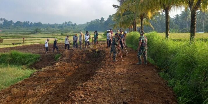Bangli – Sebagai wujud kepedulian TNI terhadap kesulitan masyarakat, khususnya para petani, anggota Kodim 1626/Bangli yang dipimpin langsung Danramil 1626-01/Bangli, Kapten Cpl I Wayan Widana, bersama masyarakat/krama Subak Pangsut dan Subak Peling, melaksanakan Karya Bhakti Perataan Badan Jalan Usaha Tani sepanjang ±3 KM dari Subak Pangsut menuju Subak Peling, berlokasi di Banjar Dinas Kuning, Desa Tamanbali, Kec./Kab. Bangli, Minggu (24/8/25).