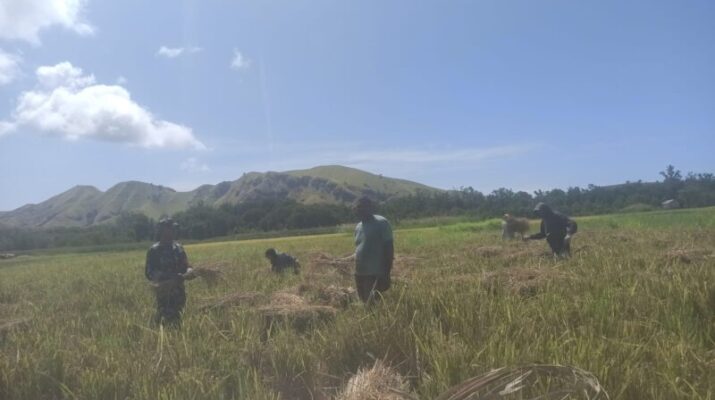 Ende, Sebagai bentuk dukungan terhadap program Ketahanan Pangan (Han Pangan) nasional, Babinsa Koramil 1602-04/Maurole, Serka Densius Berno, turut serta dalam kegiatan panen padi sawah bersama Kelompok Tani Kemasama di Dusun Landelo’o, Desa Kotabaru, Kecamatan Kotabaru, Kabupaten Ende, pada Kamis pagi (16/10/2025).