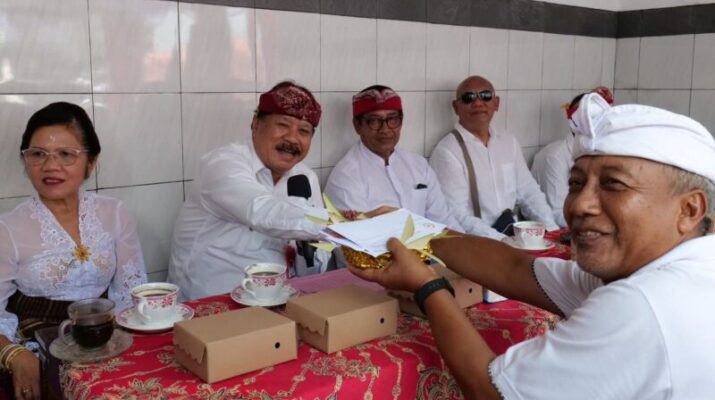 Tabanan PR – Mewakili Bupati Tabanan, Wakil Bupati Tabanan, I Made Dirga, menghadiri upacara Pemelaspasan Penyengker Pura Dadia Pasek Gelgel di Banjar Adat Dauh Pala, Pengabetan, Desa Dauh Peken, Tabanan, Selasa (4/11). Upacara yang berlangsung khidmat tersebut turut dihadiri oleh perwakilan anggota DPR RI dan DPRD Provinsi Bali, anggota DPRD Kabupaten Tabanan, unsur Forkopimcam Tabanan, serta tokoh masyarakat setempat.